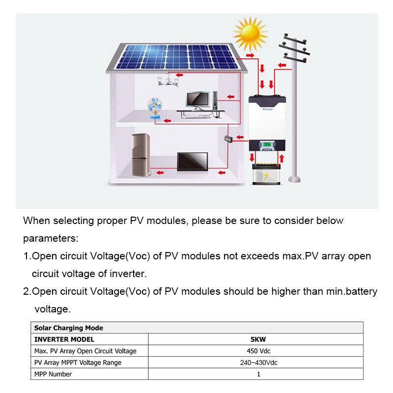 MPPT Range @ Operating Voltage: 150~450VDC Rated Power: 5000VA/5000W