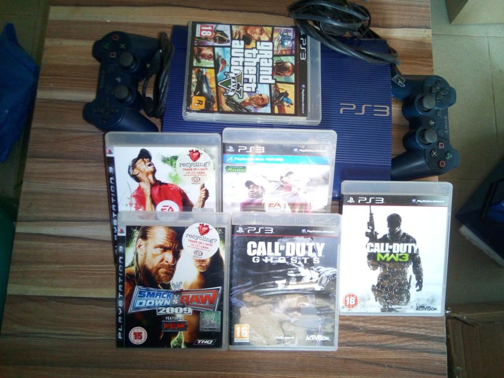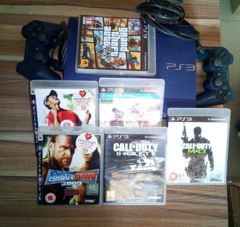 The PlayStation 3 (PS3) is a video game, compatible for home and commercial users. this product is used just as new, with two game pads and six game CDs available.